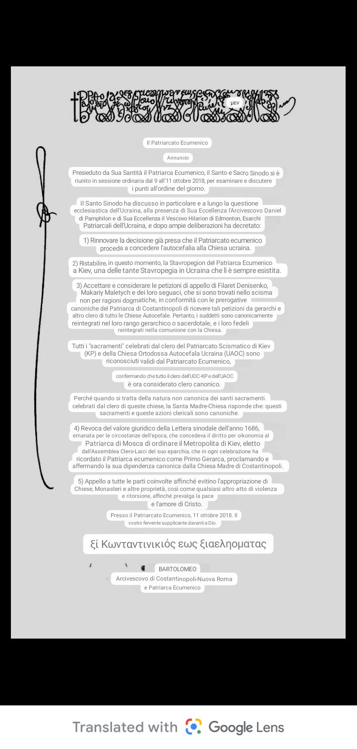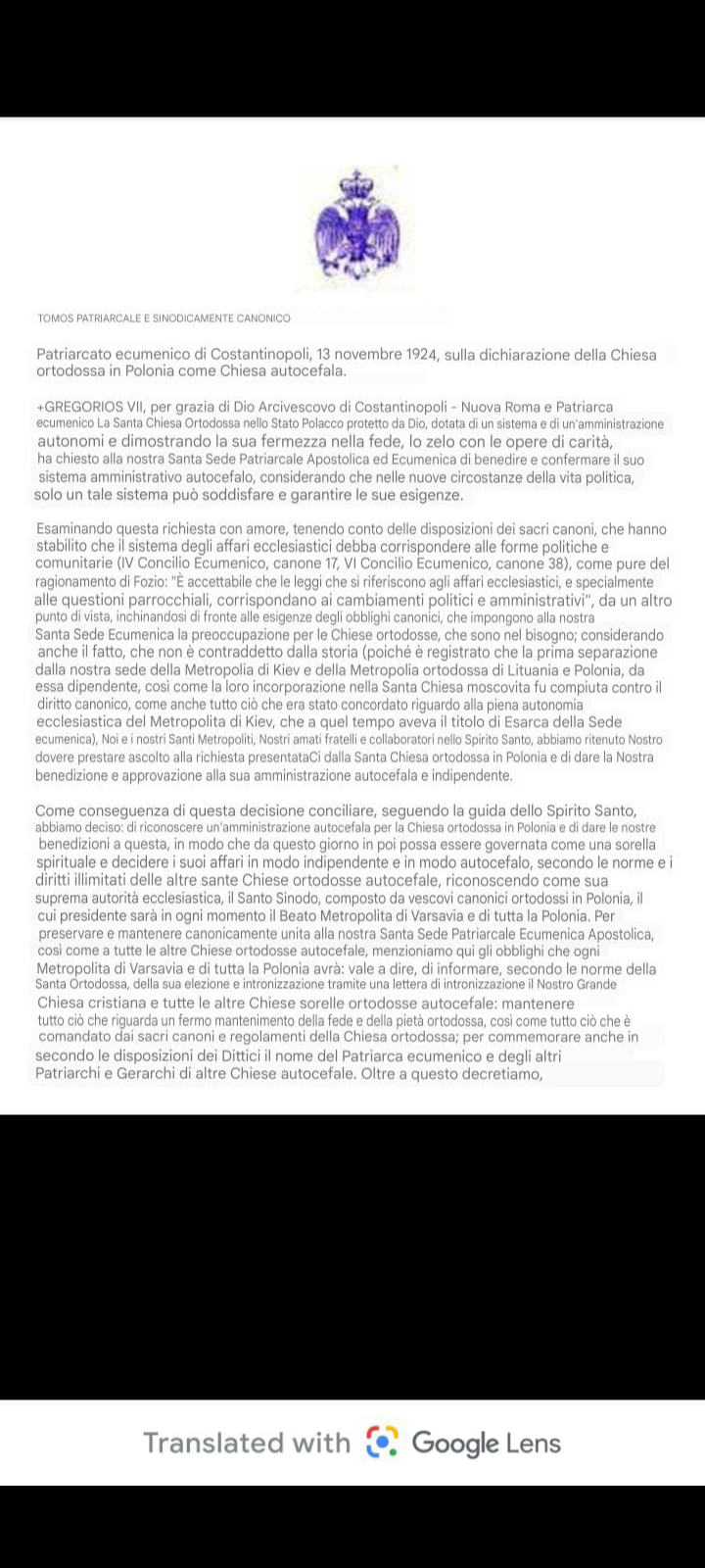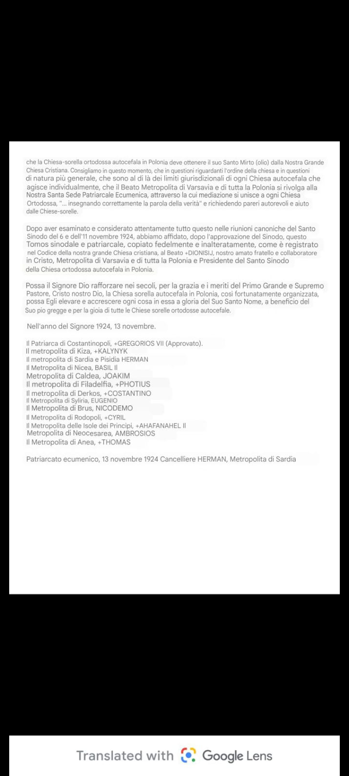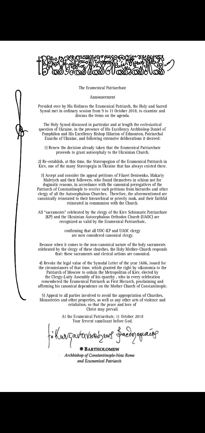 Tomos del 1924, Riconoscimento Ufficiale di tutti gli ordini Ministeriali e dei Sacramenti da parte del Patriarcato ecumenico di Costantinopoli del anno 2018; Benedizione Apostolica e conferma del riconoscimento degli Ordini Ministeriali, dei Sacramenti e della Meritevole Missione Spirituale dell OCA UAOC da parte del Patriarcato ecumenico di Costantinopoli a Settembre 2024